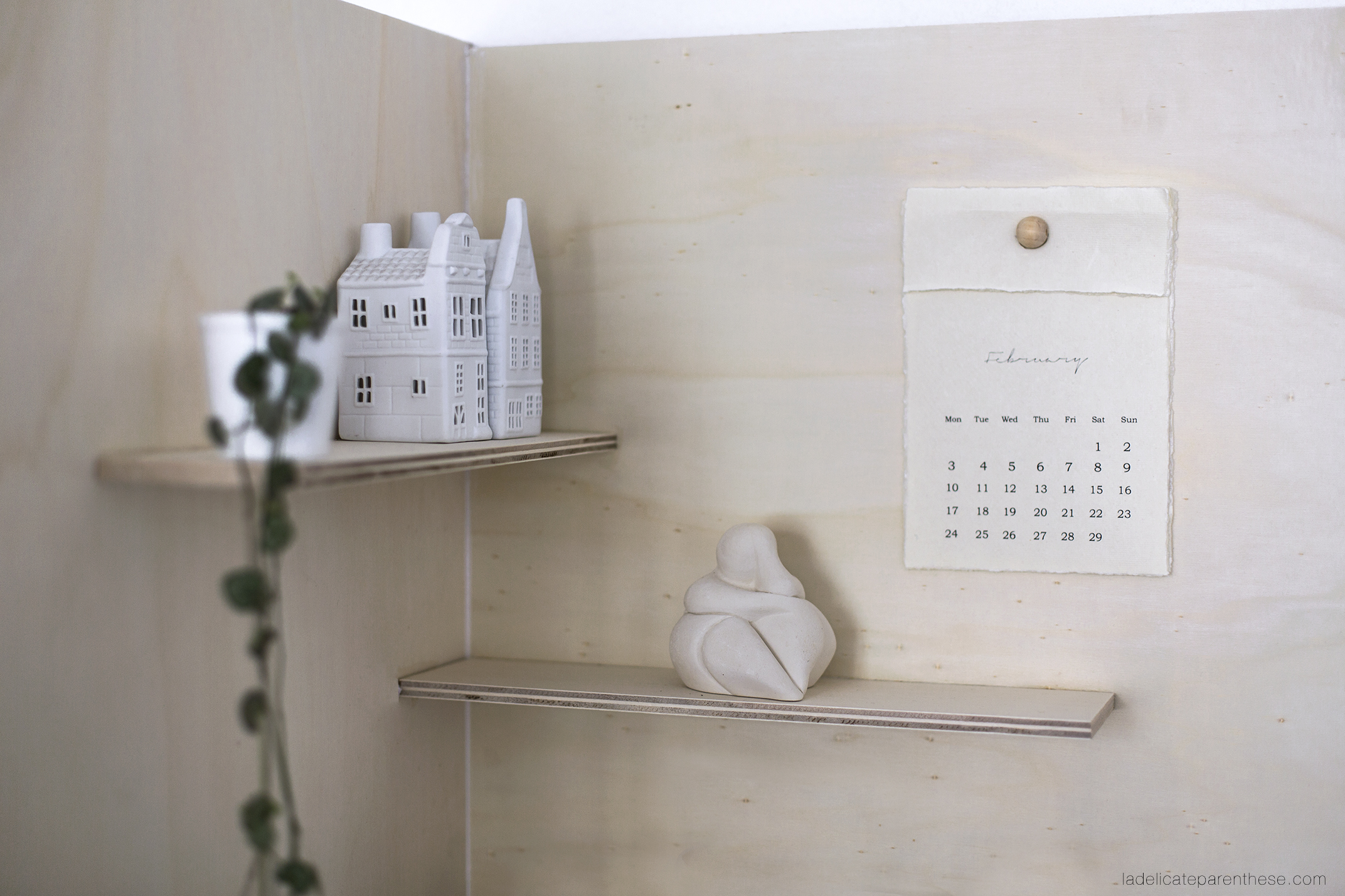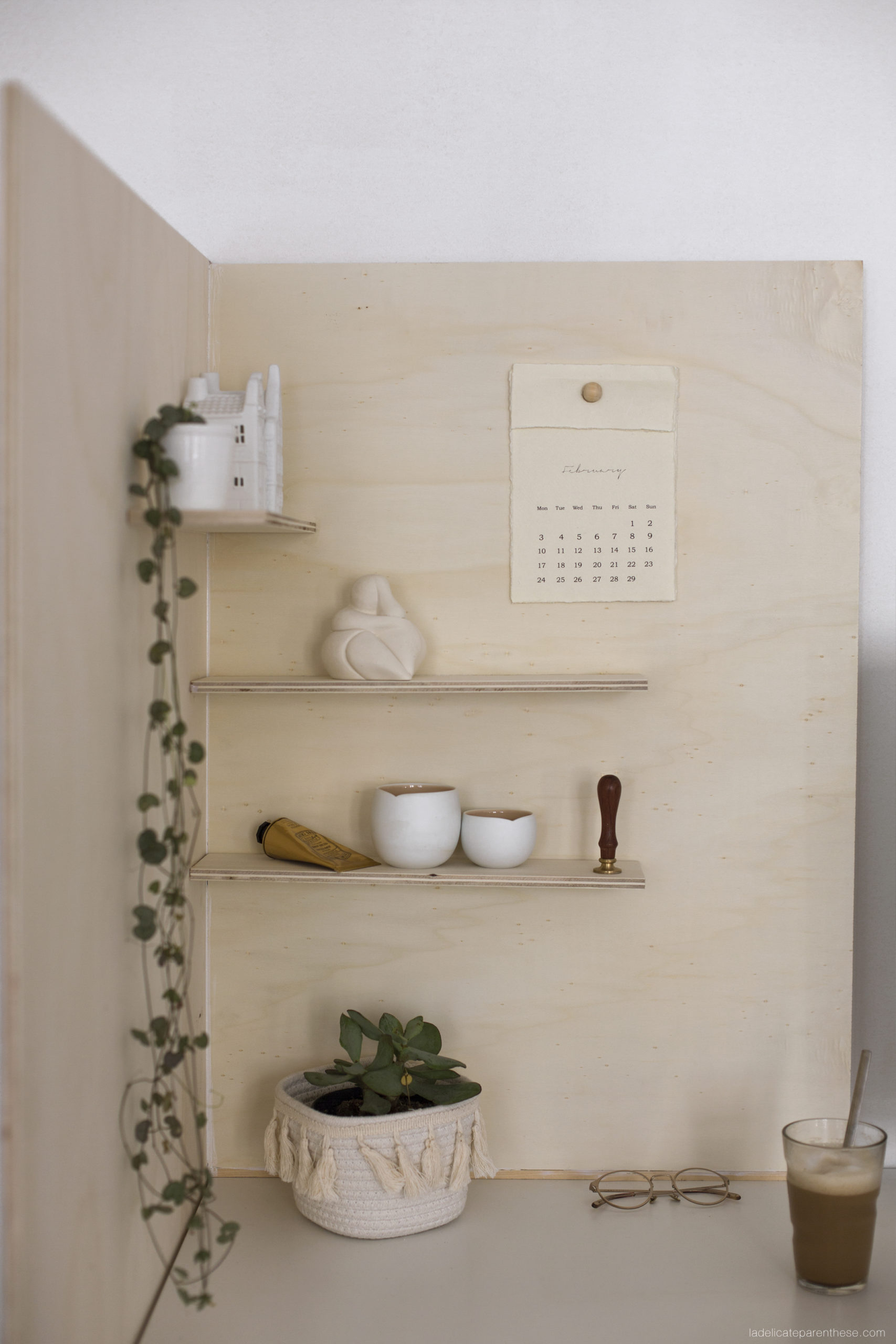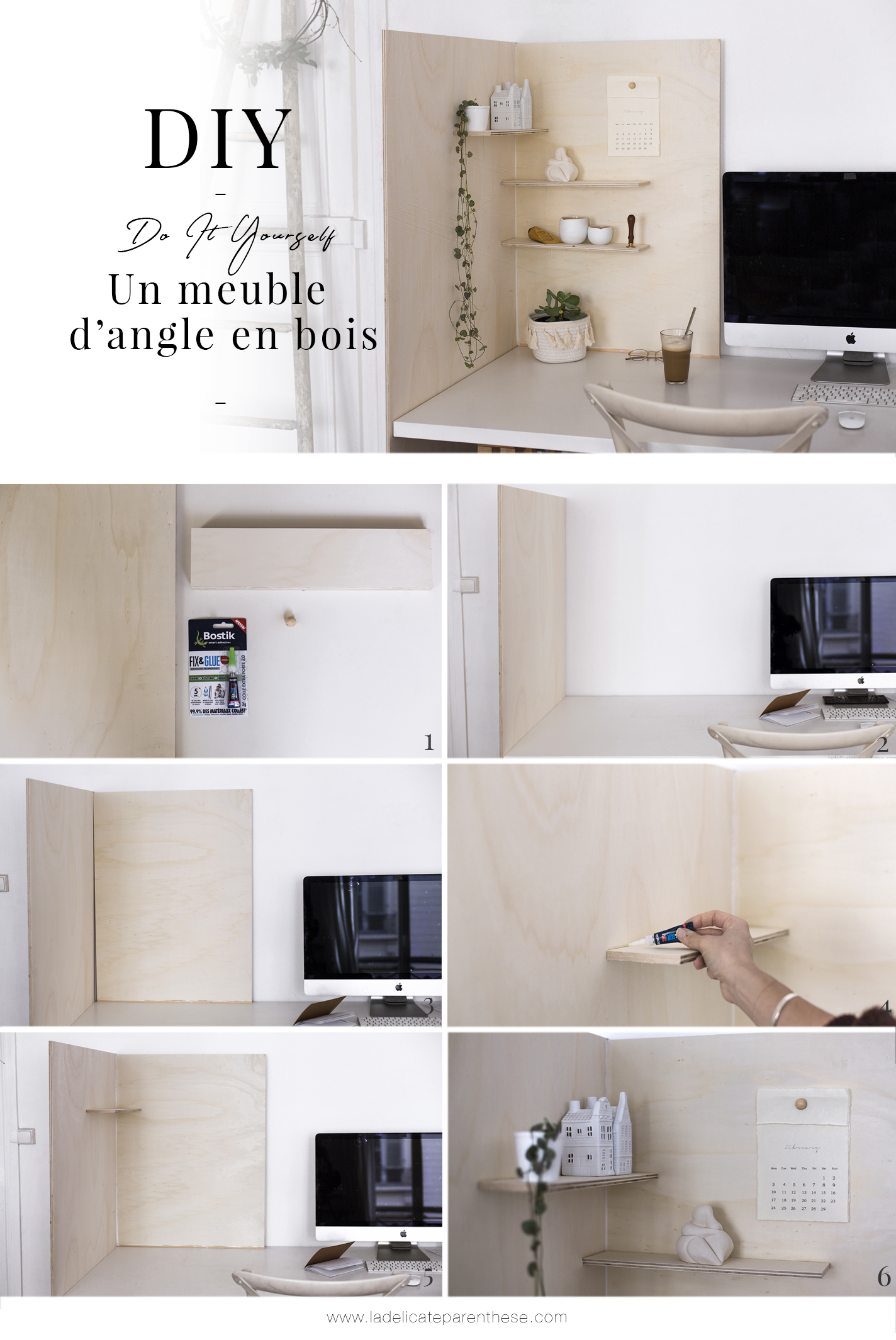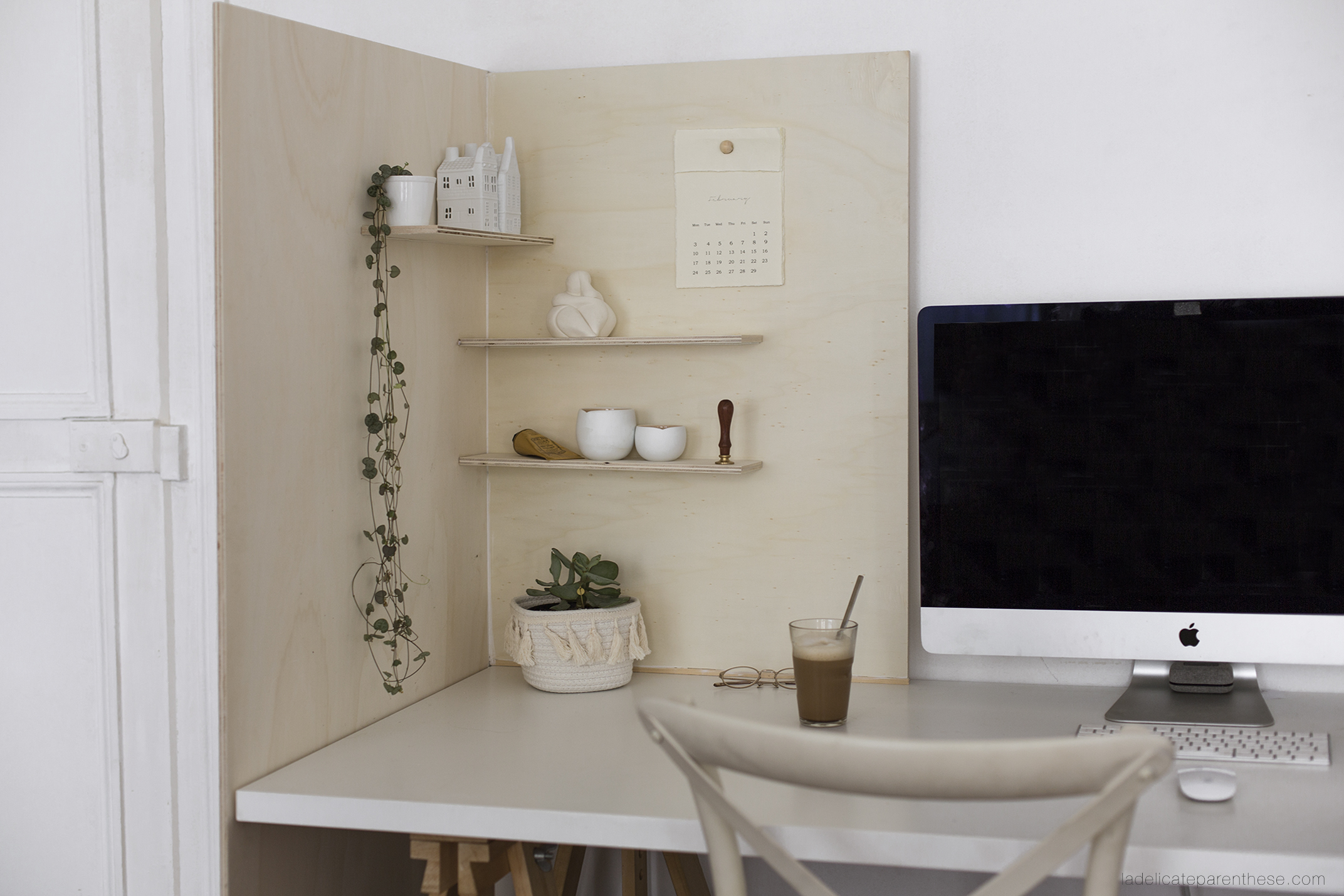 Je vous laisse donc vous délecter du résultat, en espérant que ce dernier vous plaise et vous inspire, et n’oubliez pas de me partager vos créations (avec le petit #ladelicateparenthese ), ou de m’écrire en commentaires ce que vous aimeriez voir par ici, ce que vous pensez de cet angle de bureau en bois et si vous aimeriez que je partage la réalisation de l’agenda 2020 que vous retrouvez fixé sur ce meuble d’angle en bois.