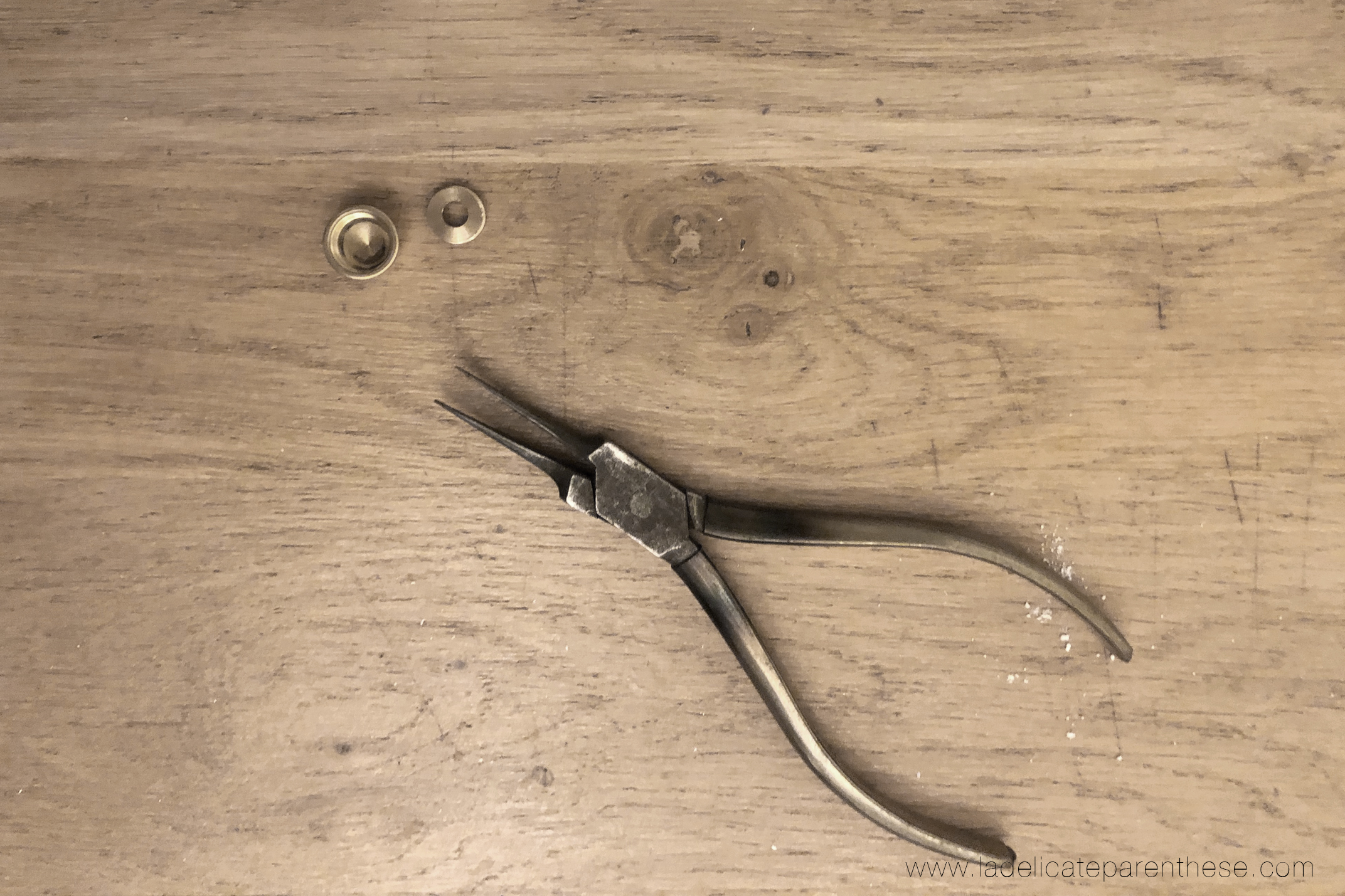 Tout comme les caches vis sphériques, une petite perle ronde, ou en demi sphère pourra tout à fait faire l’affaire, fixée avec simplement de la colle forte.